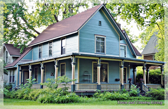 Next is Jennifer from Town and Country Living. I came across Jennifer and discovered she lived in an area where I had spent many years, in the Fox River Valley in Northern Illinois. Come to find out, her husband went to school with my sister-in-law! Small world this blogging community! Jennifer is pure delight! She lives in a beautiful area and shares her love of homes and heritage with us like her recent visit to a neighboring town where she took photos of beautiful old homes like this one................